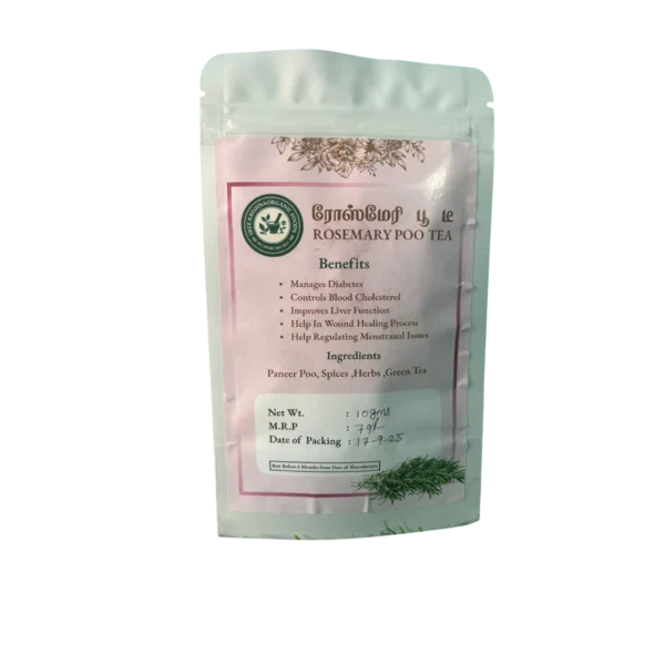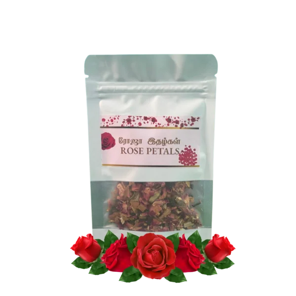 A delicate herbal tea made with rose petals, herbs, and green tea.